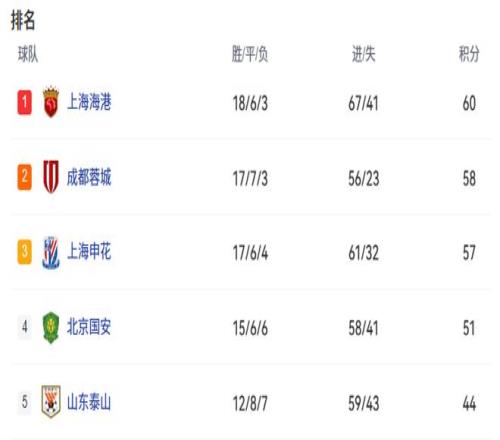 其次,蓉城队一跃成为中超头号争冠热门!海港队刹车,蓉城队本轮只要赢球,积分就将达到61分,直接升到第一名。最后2轮比赛,蓉城队分别面对河南队以及保级成功的深圳新鹏城。