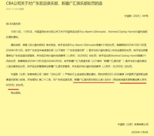 重拳出击!CBA追加处罚广东新疆:准入扣6分+60万罚款,大快人心