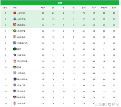 云南玉昆末轮拿到1分,赛季最终排名定格第八,而河南队最终排名第十。青岛西海岸末轮全取3分升至第九,而长春亚泰排名垫底降级,但拥有第1递补顺位资格。山东泰山之前就锁定第五名,而武汉三镇末轮惨败,最终排名第13位。