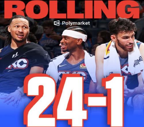 此外,卫冕冠军这一次还创下2大神迹,首先就是他们已经豪取16连胜,这创造了加入俄城之后的最长连胜纪录。在上赛季雷霆就拿到过15连胜,可惜之后未能更进一步,不过本赛季他们再次达成。另一个则是拿到了24胜1负成绩,NBA历史第二支做到的球队,另一支球队就是15-16赛季的勇士。