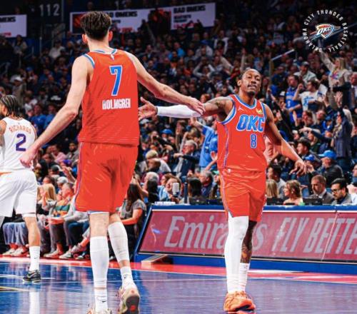 雷霆这一次手感火热,特别是在三分线外,40投22中,命中率超过五成,这让太阳也是一点办法都没有。而这22记三分来自12名球员,除了杰林没有命中三分,其他球员都有三分入账,霍姆格伦4中4,亚历山大和吉昂都是4中3,每个球员上来都能命中,这样的阵容深度真的让对手毫无办法。