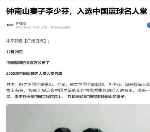2025年12月25日,李少芬入选中国篮球名人堂的消息公布后,不少网友留言“实至名归”。